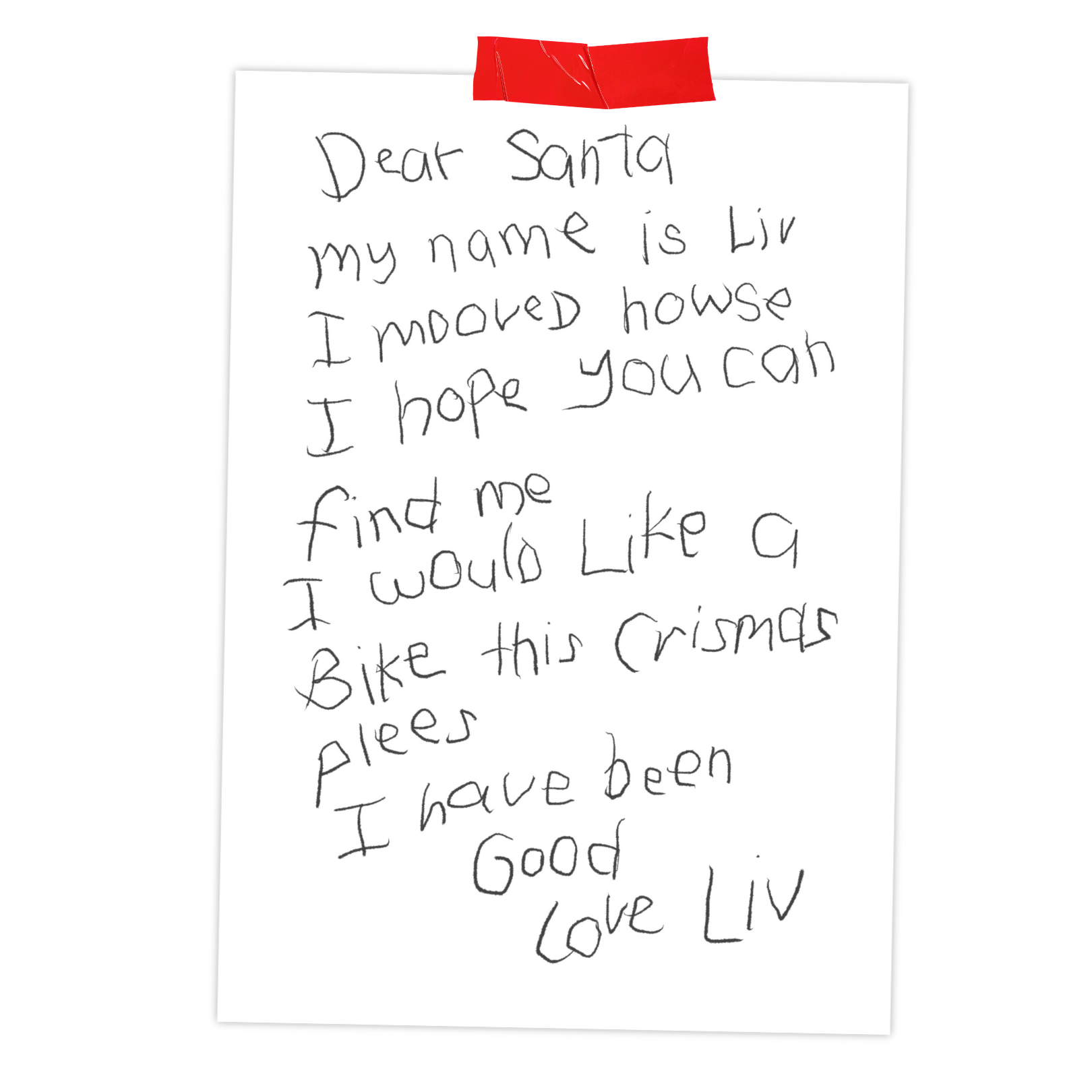 This year, Liv wrote a letter to Santa. This Christmas she wants a bike - but more importantly, she wants to be found, seen and loved.